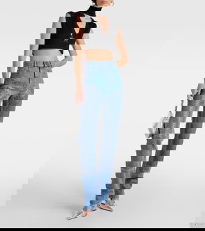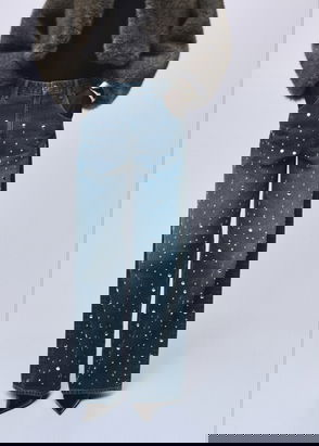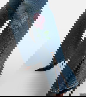 Embroidered Rhinestone-Embellishment Denim Jeans