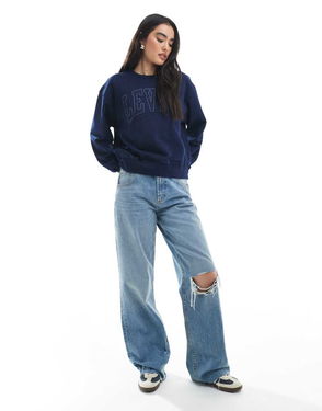 Phoenix Fleece Oversized Longline Sweatshirt In Light Blue
