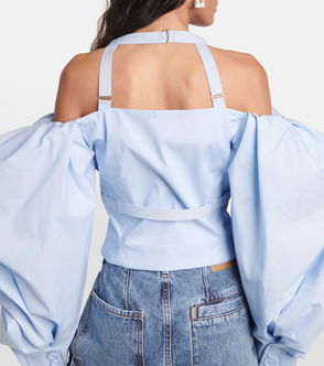 Kai Cotton Tie Neck Shirt, Ice Blue