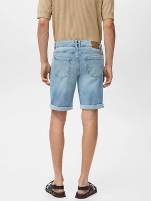 Abercrombie & Fitch Athletic Fit Loose Denim Shorts In Mid Wash Blue