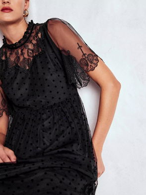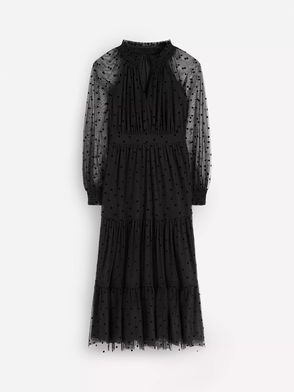 Lucille Tulle Long Sleeved Midi Dress, Black