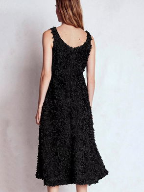 Lucille Tulle Long Sleeved Midi Dress, Black