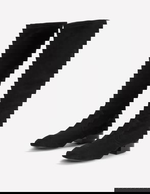 Heeled Stretch Suedette Knee Boots, Chocolate