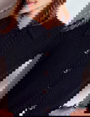 Collared Knitted Cardigan-Navy/ Ivory
