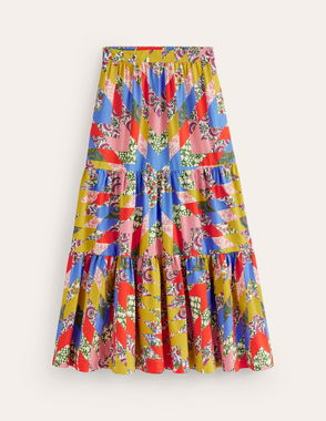 Lorna Tiered Maxi Skirt-Multi, Patchwork Floral