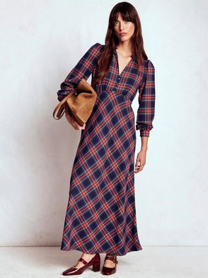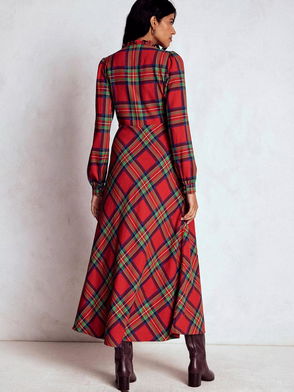 Cassie Check Tea Dress, Navy/Green/Red