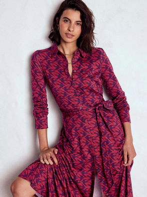 Marcia Birds Jersey Shirt Dress, Red