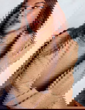 Frill Trim Cashmere Jumper-Camel Melange