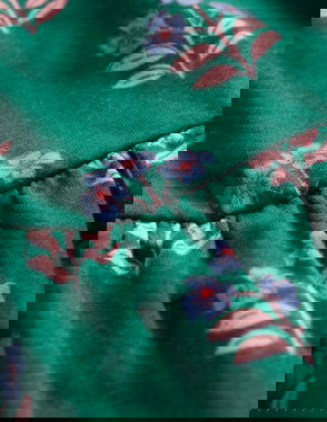 Curved Yoke Jersey Dress-Jewel Green Flower Stamp
