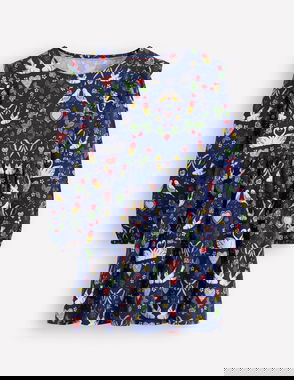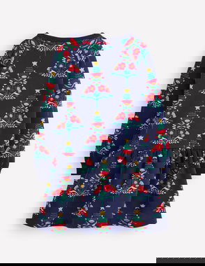 Cosy Sweatshirt Dress-College Navy Christmas Trees