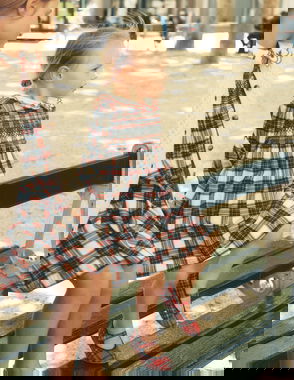 Madeline Long Sleeve Dress-Red Check
