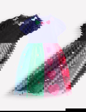 Panelled Frill Tulle Dress-Multi Colourblock