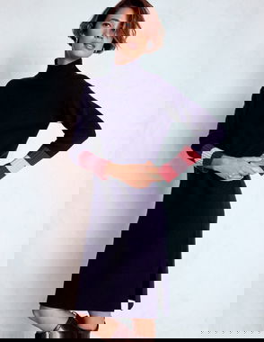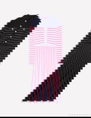 Brönte Knitted Rib Shirt Dress-Navy And Red Stripe