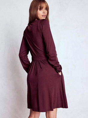 Mila Long Sleeve Jersey Dress, Dark Cherry