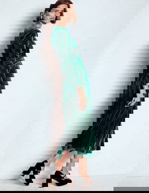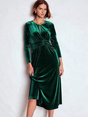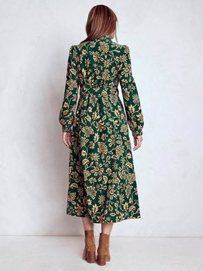 Adelaide Floral Zip Corduroy Midi Dress, Emerald/Multi