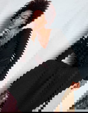 Alexandra Jersey Midi Dress-Black, Tortoise Shell Dot