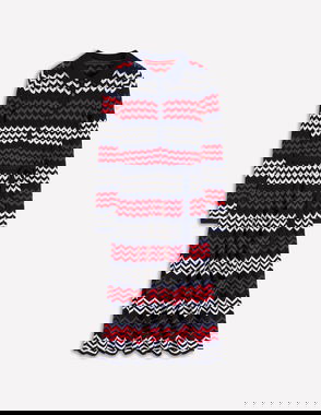 Chevron Stitch Midi Dress-Navy, Red And Ivory Chevron