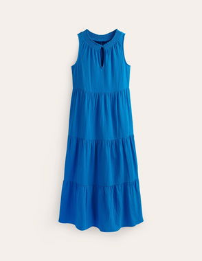Double Cloth Maxi Tiered Dress-Indigo Bunting