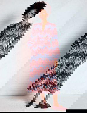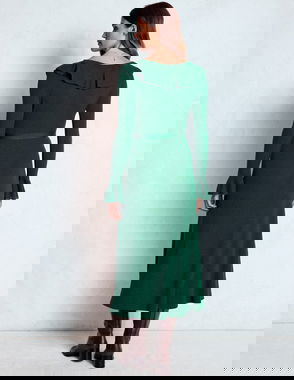 Naomi Cotton Blend Long Sleeve V Neck Fit & Flare Dress