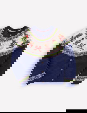 Edie Fair Isle Cardigan-Blue Nutcracker
