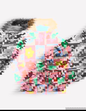 2-in-1 Padded Coat-Multi Woodblock Flower