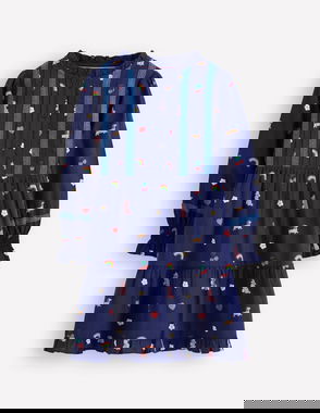 Ariel Long Sleeve Twirly Dress-Blue Flowerbunch