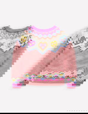 Edie Fair Isle Cardigan-Pink Marl Hearts