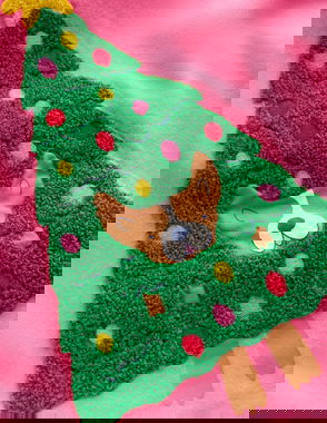 Long Sleeve Bouclé T-shirt-Pink Christmas Tree Dog