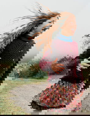 Posie Long Sleeve Jersey Dress-Multi Flower Check