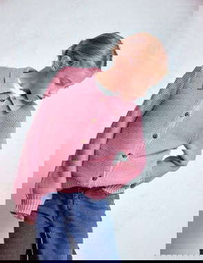 Edie Fair Isle Cardigan-Pink Marl Reindeer