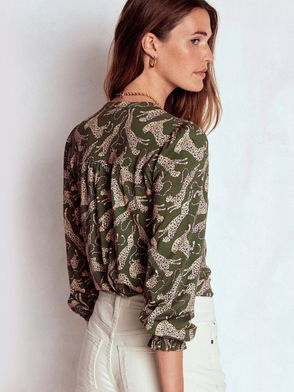 Elsa Cheetahs Smocked Yoke Jersey Top, Green