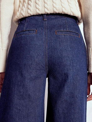 High Rise Wide Leg Contrast Pockets Jeans, Blue/Multi