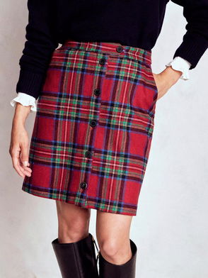 Cecelia Tartan Wool Rich Skirt, Red/Multi