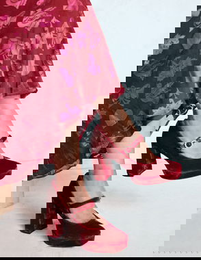 Embellished Bow Tartan Mary Jane Court Shoes, Red/Multi