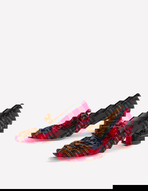 Iris Suede Kitten Heel Loafers, Brown/Multi