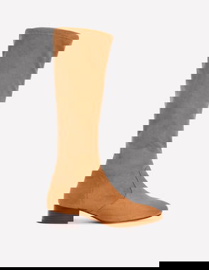 Heeled Stretch Suedette Knee Boots, Chocolate