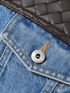 Leather-Panel Regular-Fit Denim-Down Jacket