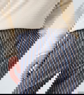 Stripe-Pattern Straight-Leg Regular-Fit Woven Trousers