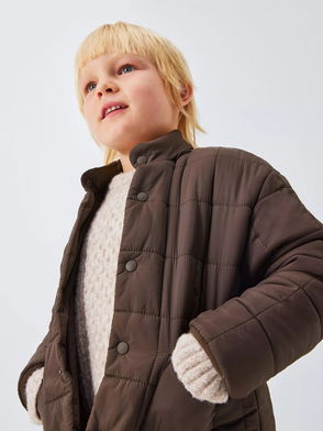 Kids' Dina Cotton Blend Quilted Coat, Pastel Brown
