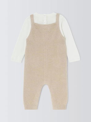 Baby Marl Dungarees & Long Sleeve Top Set, Brown