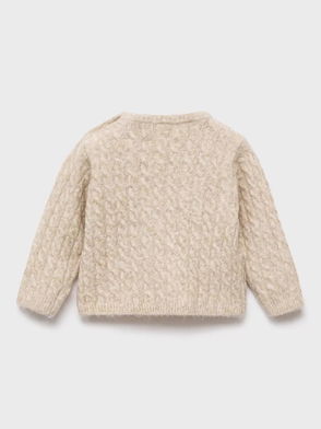 Baby Cotton Cashmere Blend Cable Knit Sleepsuit, Natural