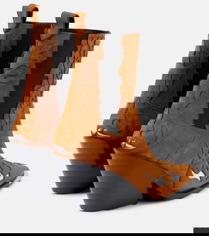 West Suede Round Toe High Heel Shoe Boots, Brown