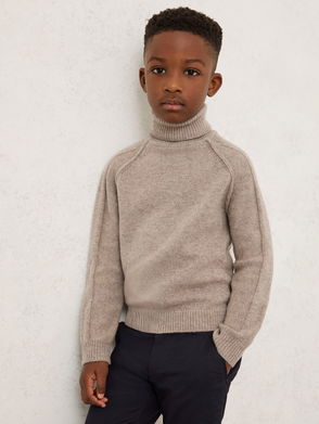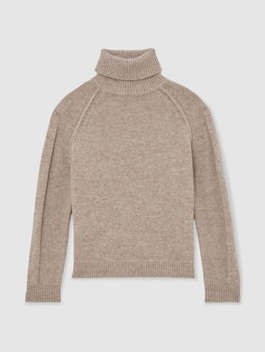 3-9 Yrs Wool-Cashmere Roll-Neck Jumper In Light Brown Melange
