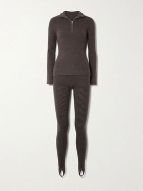 Ella Ribbed Cashmere Half-Zip Sweater And Leggings Ski Set