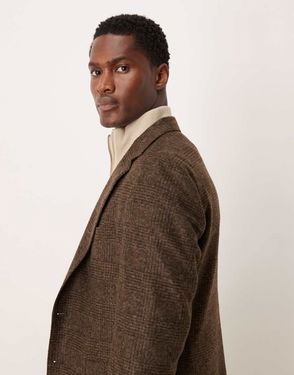 Wool Blend Tweed Blazer In Dark Brown