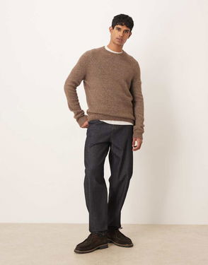 Classic Relaxed Fit Ribbed Jumper In Latte