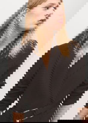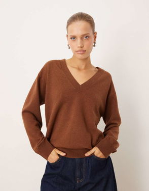 V Neck Long Sleeve Knitted Top In Brown