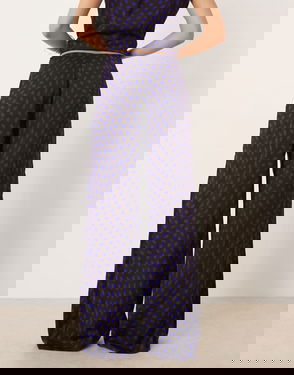 Satin Wide Leg Trouser Co-ord In Brown Polka Dot