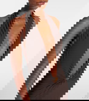Asymmetric Sleeveless Top With Hardware Detail In Brown