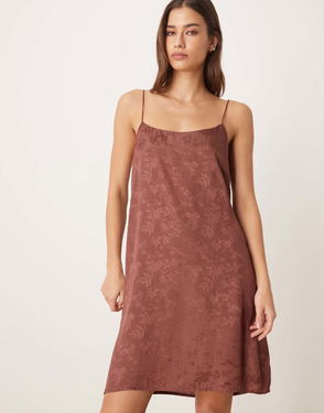Satin Jacquard Nightie In Brown